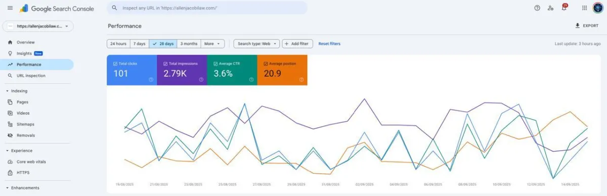 Solved critical indexing issues and boosted organic leads for law firm through technical SEO improvements.